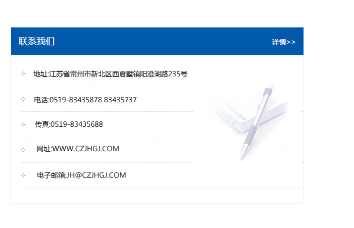地址:常州市新北區友邦商務大廈1幢16、17層  電話:0519-85101652  傳真:0519-85112595  郵編:213022  網址:www_cz-jiayue_cn.giant-km.com  郵箱:xiajifengaa@163.com